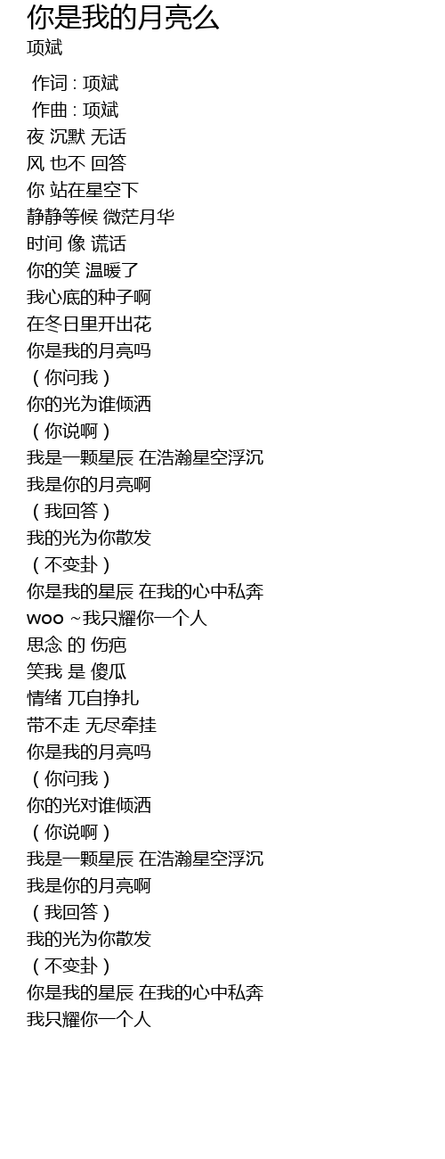 | [01:37.711] | wǒ shì nǐ de yuè liàng a |