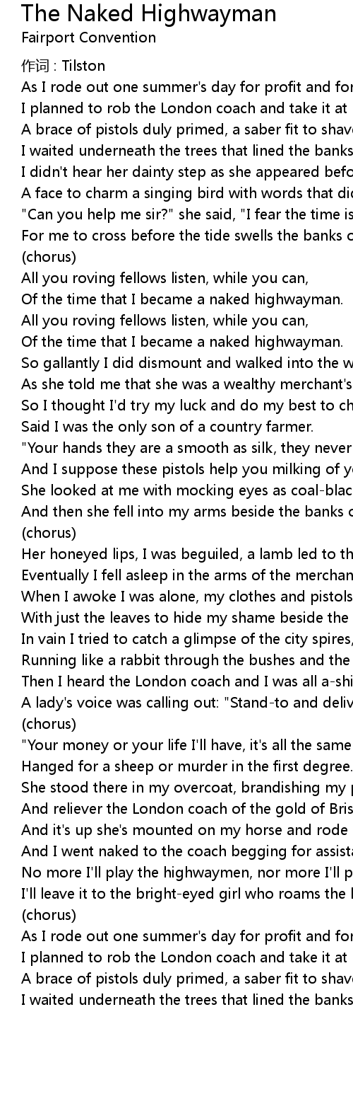 | No more I' ll play the highwaymen, nor more I' ll put the mask on, | |