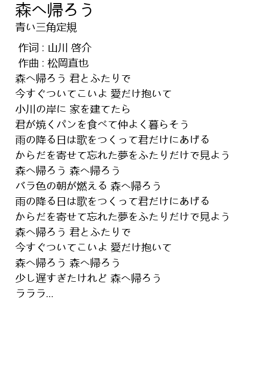 | [02:25.175] | 森へ帰ろう 君とふたりで |