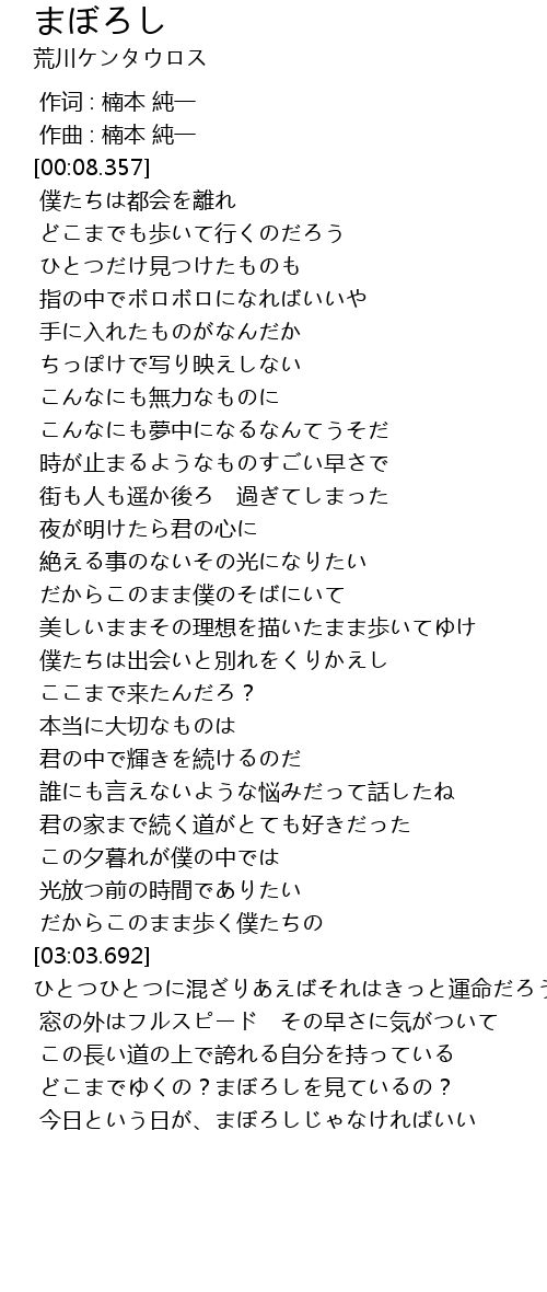 | [03:41.901] | 今日という日が、まぼろしじゃなければいい |