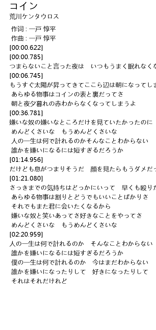 | [00:24.714] | あらゆる物事はコインの表と裏だってさ |