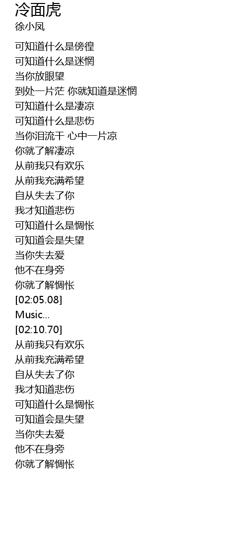 | [00:59.97] | 当你泪流干 心中一片凉 |