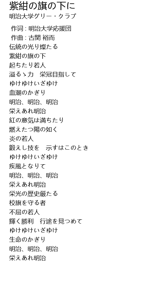 | [00:00.000] | 作词 : 明治大学応援団 |