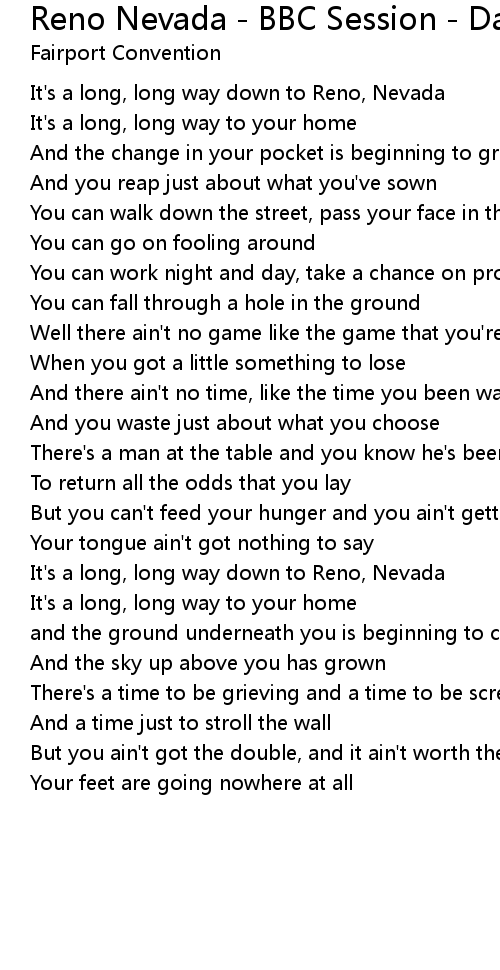 Reno Nevada - BBC Session - David Symonds 6/1/69 Lyrics