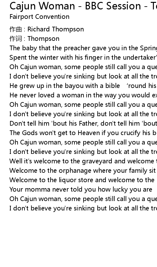 | Oh Cajun woman, some people still call you a queen | |