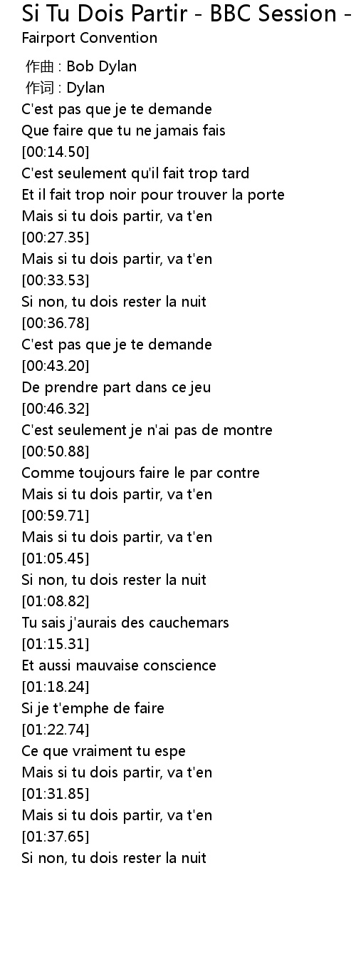 | [01:33.47] | Mais si tu dois partir, va t' en |