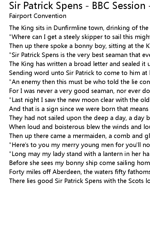 "Sir Patrick Spens is the very best seaman that ever sailed upon the sea" |