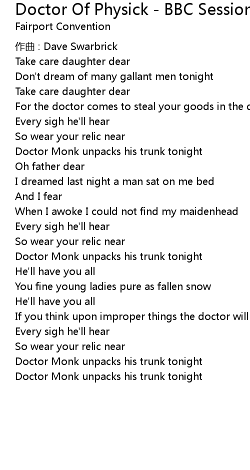 | For the doctor comes to steal your goods in the dead of night | |