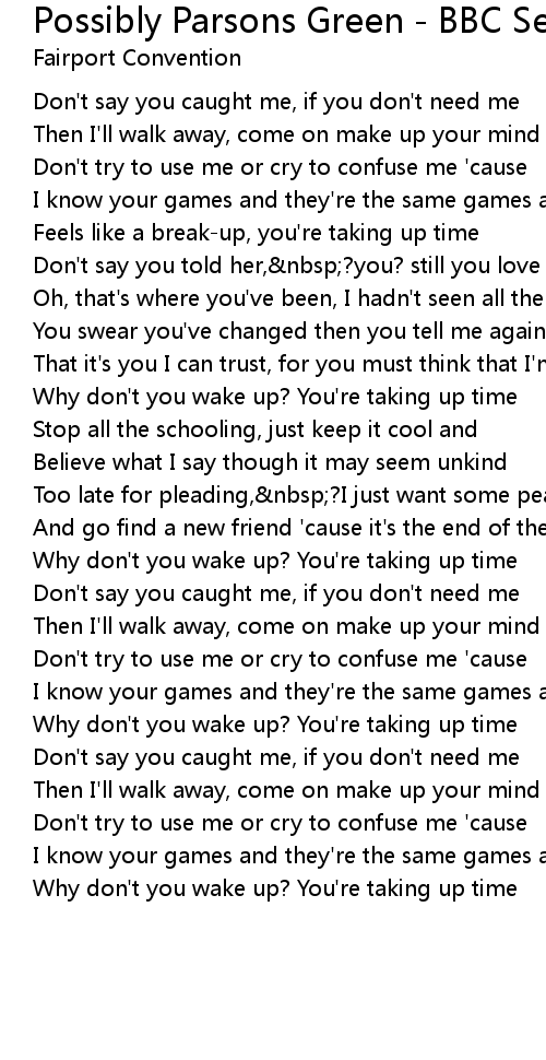 Possibly Parsons Green - BBC Session - John Peel 20/2/73 Lyrics
