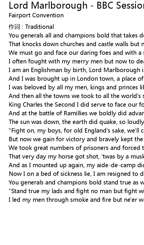 | Song | Lord Marlborough - BBC Session - Folk On One 27/3/71 |