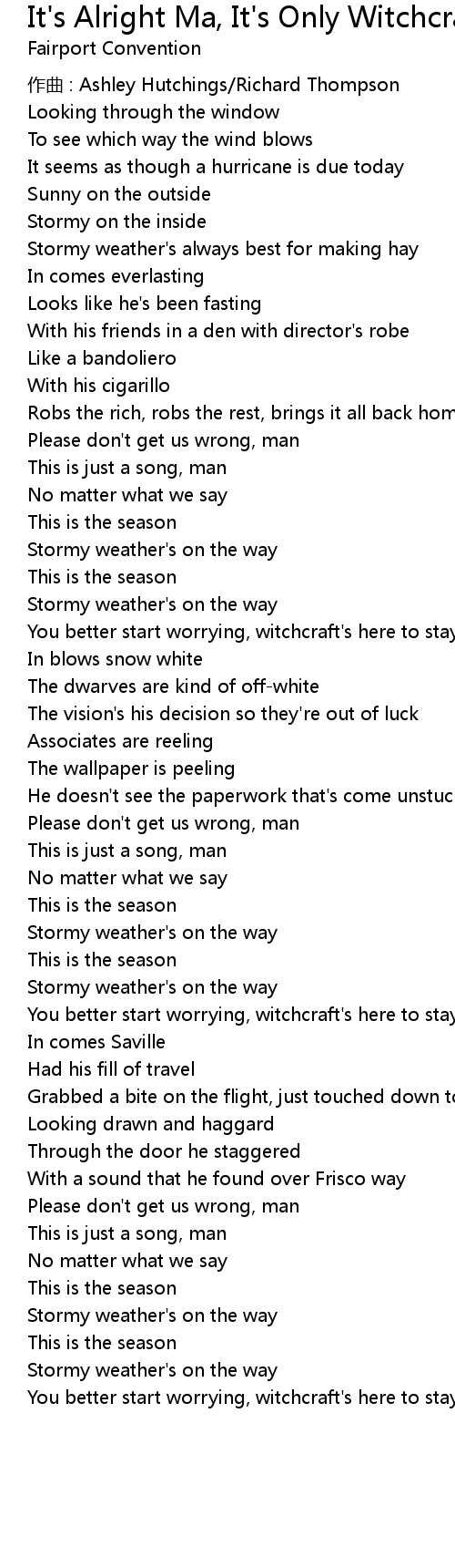 | Song | It's Alright Ma, It's Only Witchcraft |