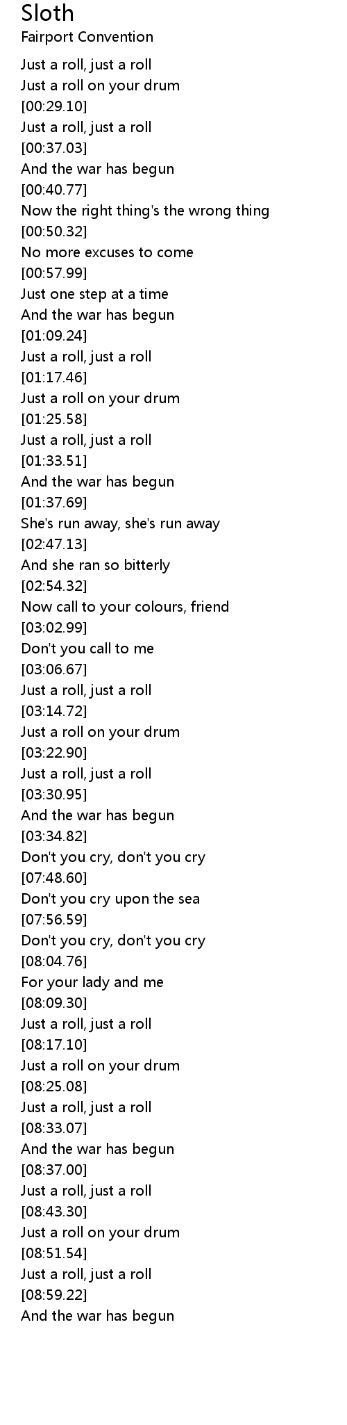Sloth Lyrics
