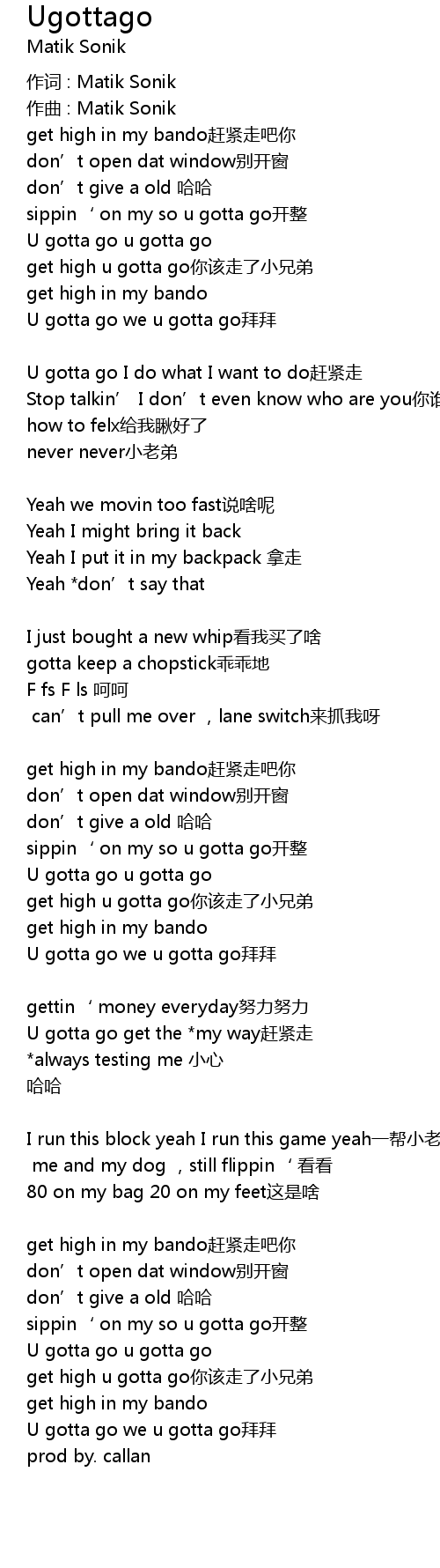 | U gotta go I do what I want to do gǎn jǐn zǒu | |