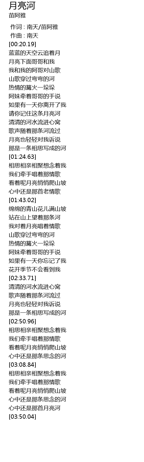 | [00:47.76] | 山歌穿过弯弯的河 |