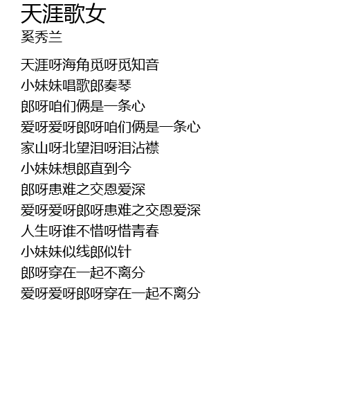 | [00:20.500] | tiān yá ya hǎi jiǎo mì ya mì zhī yīn |