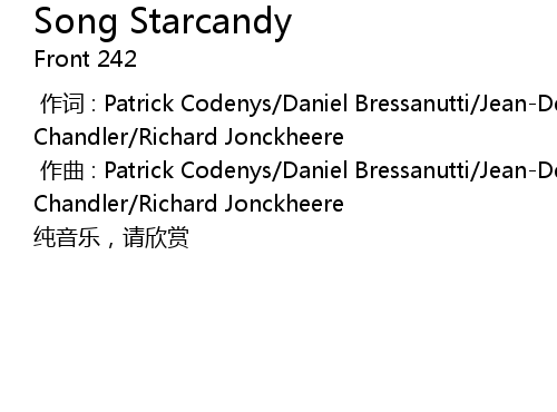 | [00:01.000] | 作曲 : Patrick Codenys/Daniel Bressanutti/Jean-De Meyer/Amy Chandler/Richard Jonckheere |