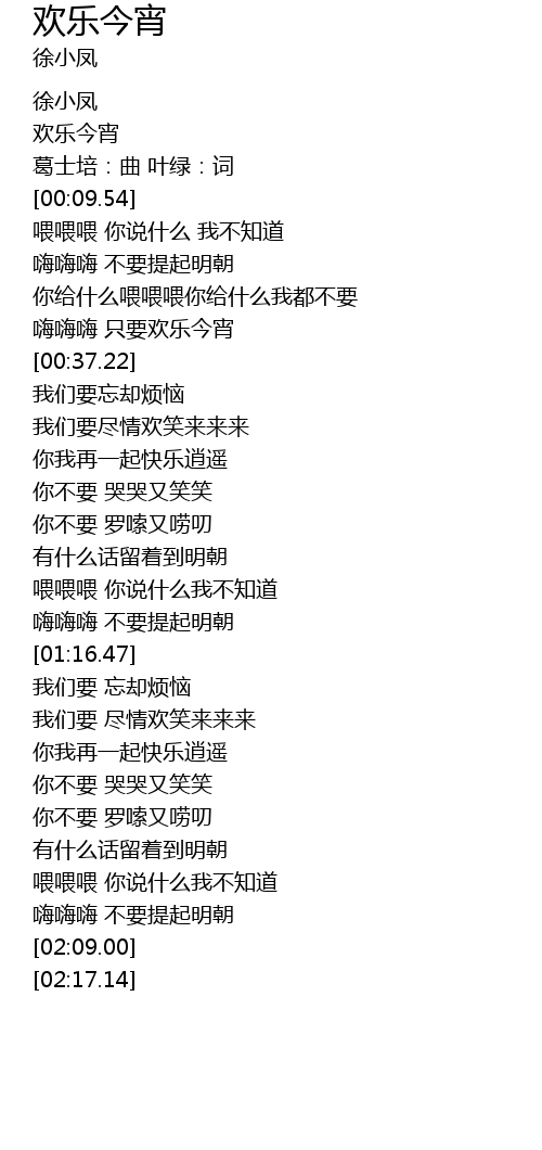 | [00:33.01] | 嗨嗨嗨 只要欢乐今宵 |