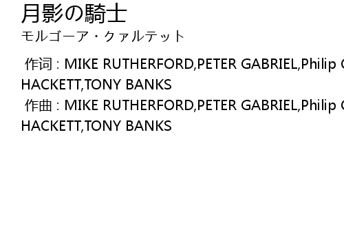 | [00:00.000] | 作词 : MIKE RUTHERFORD,PETER GABRIEL,Philip Collins,STEVE HACKETT,TONY BANKS |
