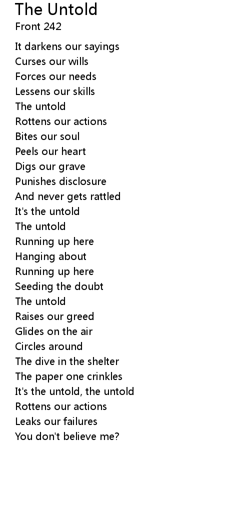 | It's the untold, the untold | |