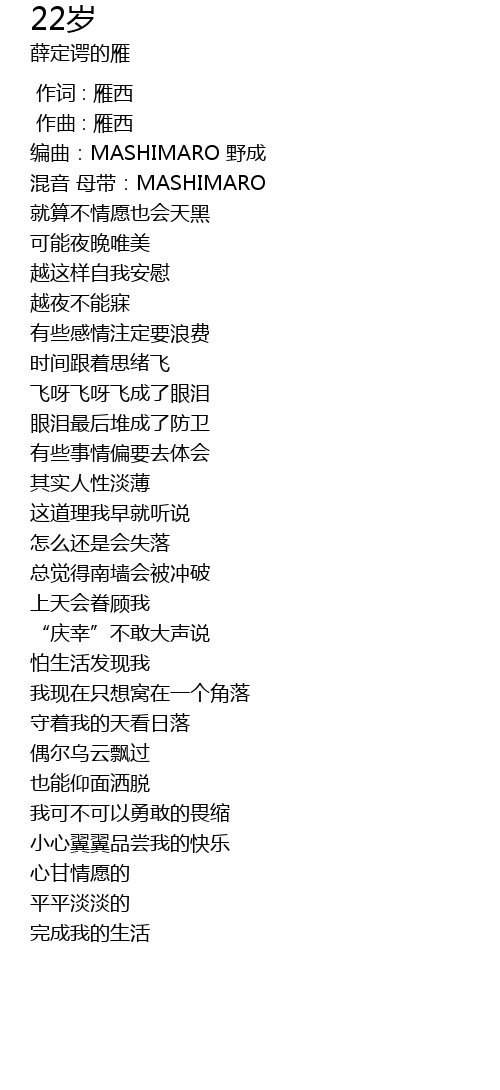 | [00:21.263] | 编曲:MASHIMARO 野成 |