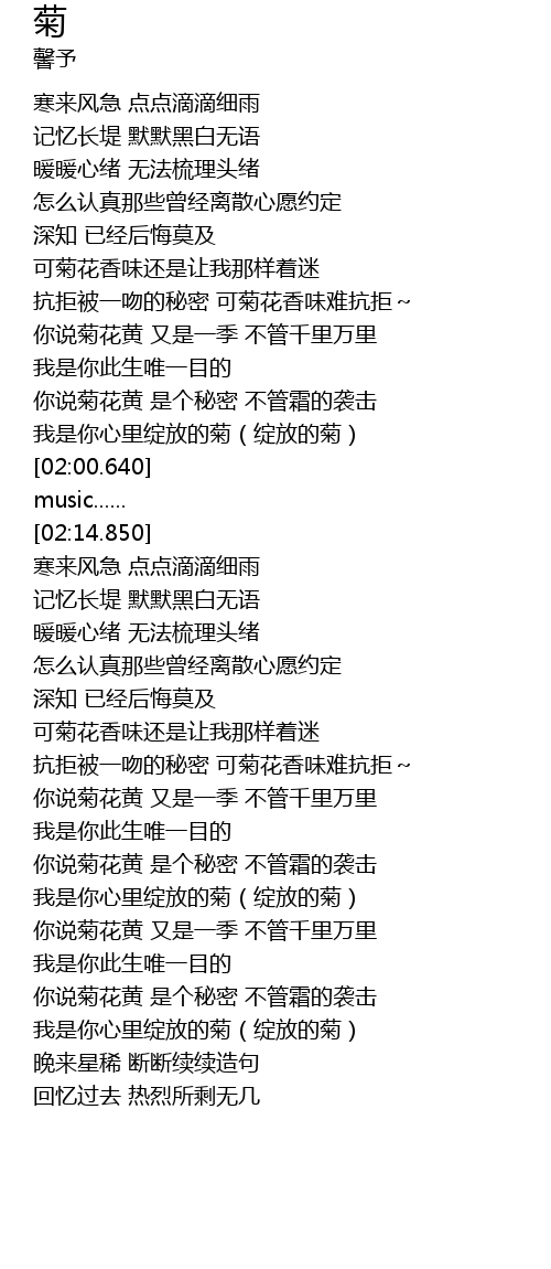 | [02:52.290] | 可菊花香味还是让我那样着迷 |