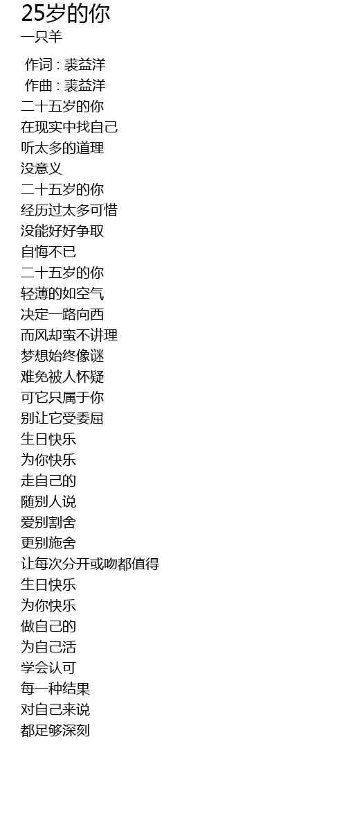 | [00:39.13] | èr shí wǔ suì de nǐ |