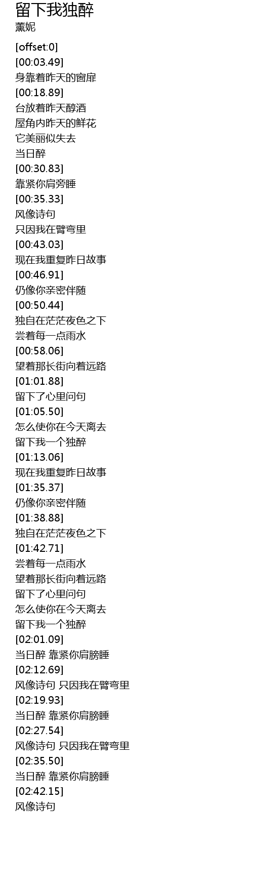 | [01:58.39] | 留下我一个独醉 |