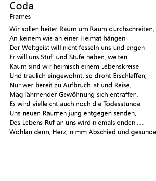 | Wir sollen heiter Raum um Raum durchschreiten, | |