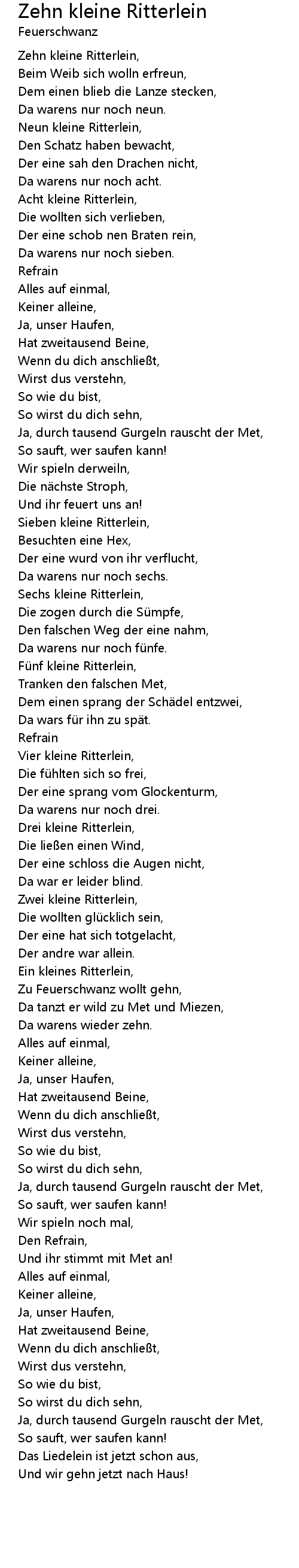 | Ja, durch tausend Gurgeln rauscht der Met, | |