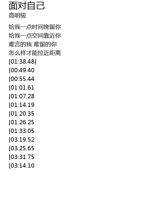 | [02:30.83][01:14.19] | 面对自己 我知道这已成过去 |