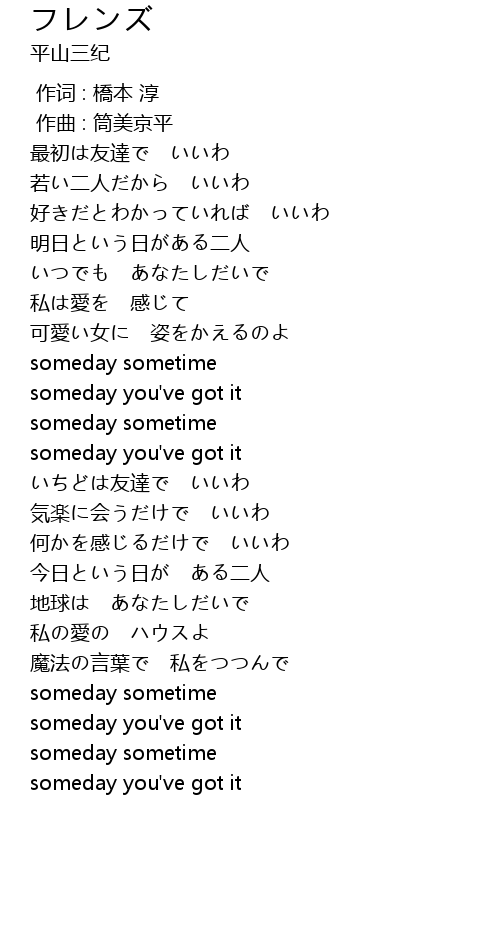 | [01:33.000] | いちどは友達で いいわ |