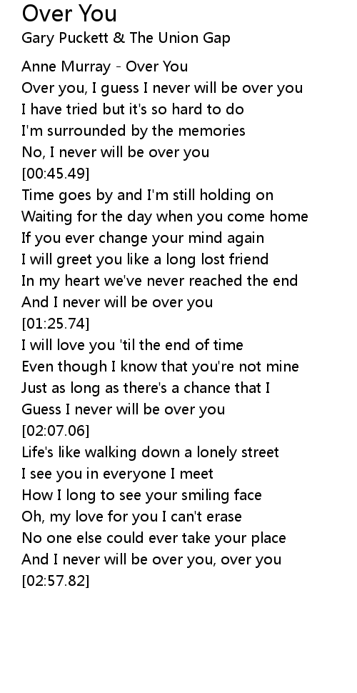 Over you, I guess I never will be over you |