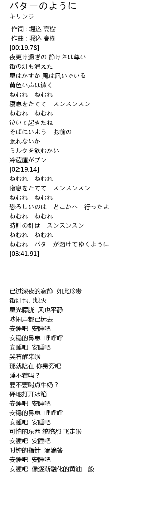 ねむれ バターが溶けてゆくように |