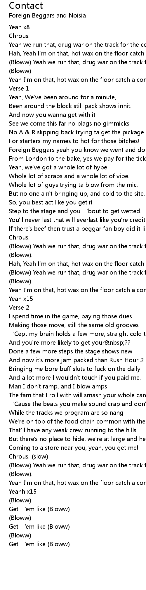 | Yeah I'm on that, hot wax on the floor catch a contact get ‘em like. (Bloww) | |