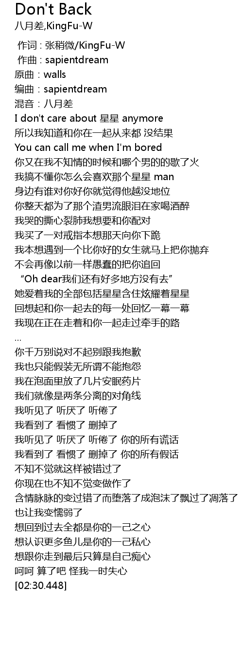 | [00:00.000] | 作词 : 张稍微/KingFu-W |