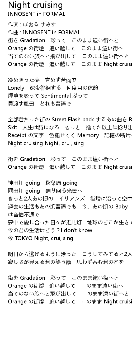 | Orange の街燈 追い越して このまま遠い街へ | |