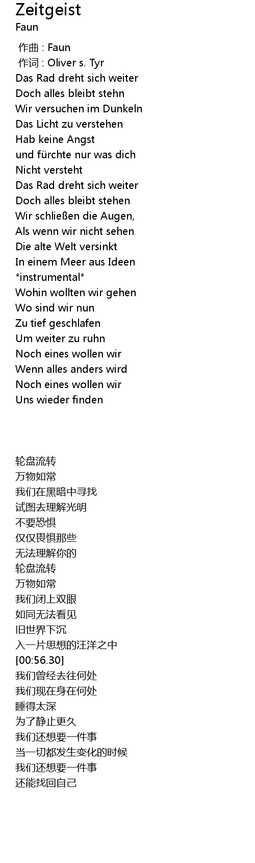 | [00:00.00] | zuo qu : Faun |