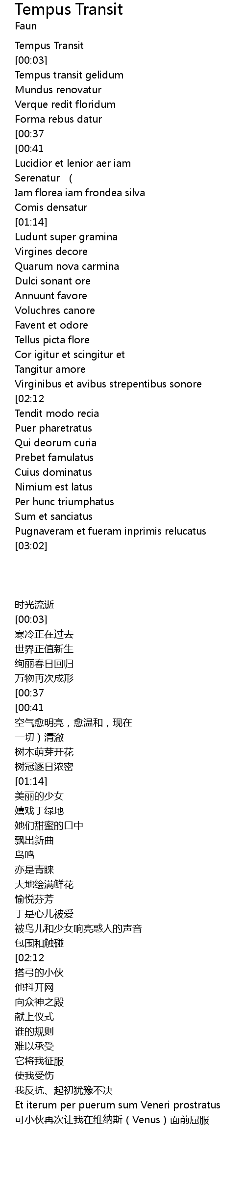 | [02:03] | Virginibus et avibus strepentibus sonore |