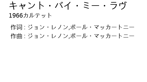 | [00:00.000] | 作曲 : ジョン・レノン,ポール・マッカートニー |