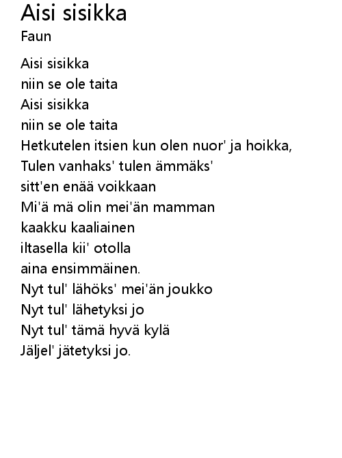 | Hetkutelen itsien kun olen nuor' ja hoikka, | |