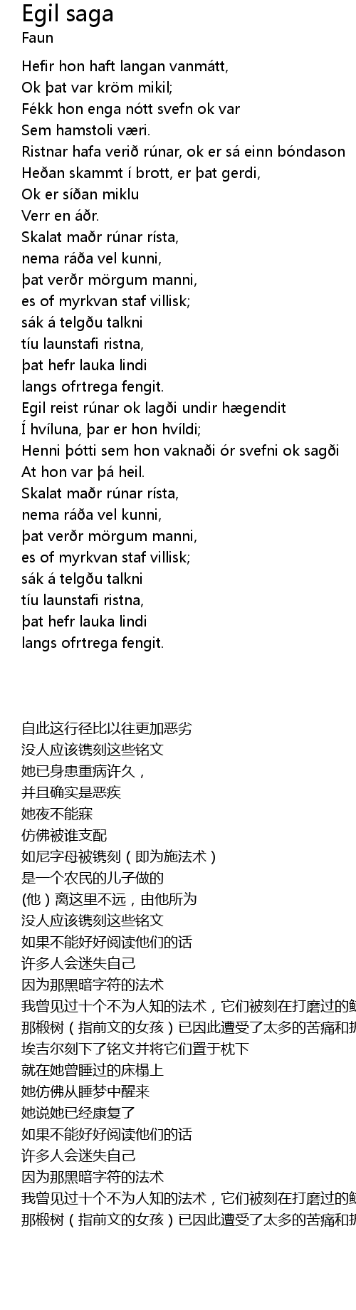 | Egil reist rúnar ok lagði undir hægendit | |