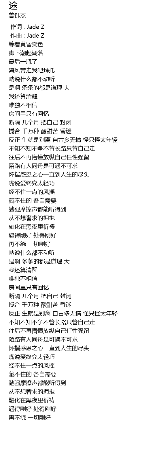 | [00:01.000] | zuò qǔ : Jade Z |