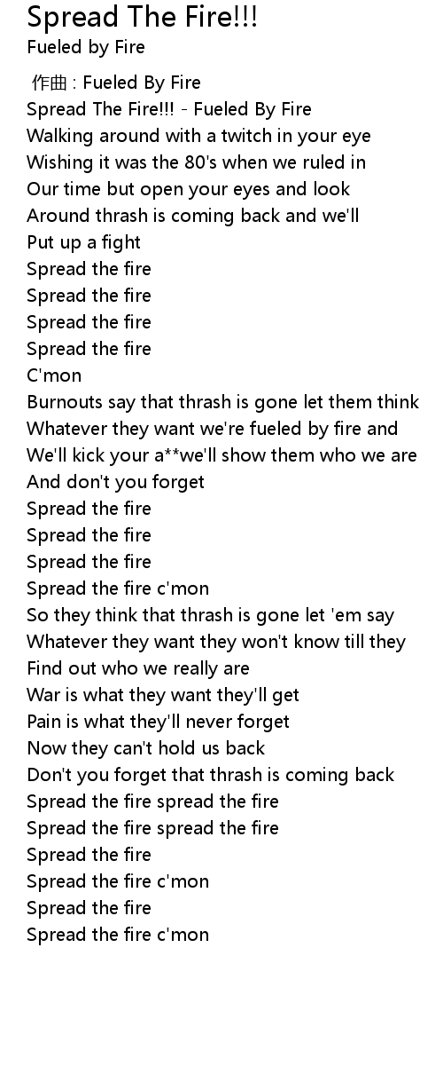 | [00:00.91] | Spread The Fire!!! Fueled By Fire |