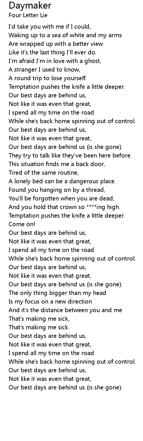 Our best days are behind us, |