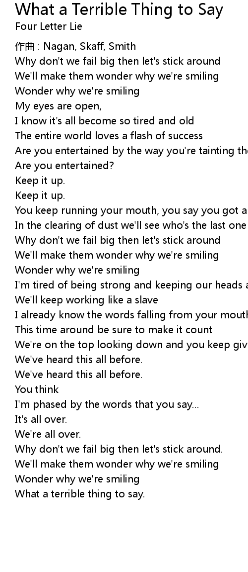 | Song | What a Terrible Thing to Say |