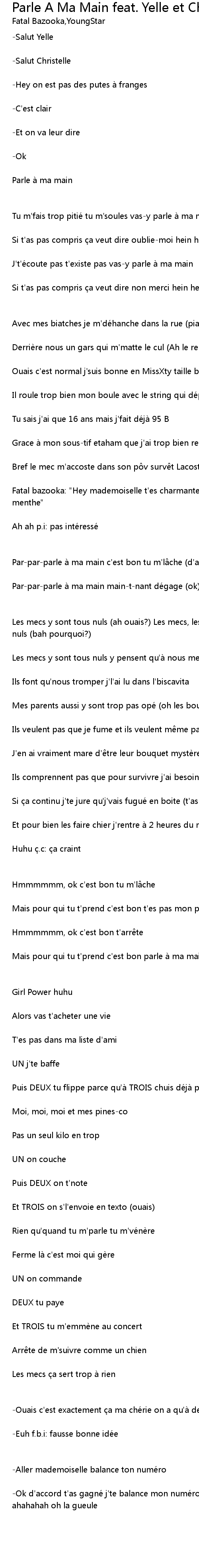 | Par-par-parle à ma main main-t-nant dégage (ok) | |