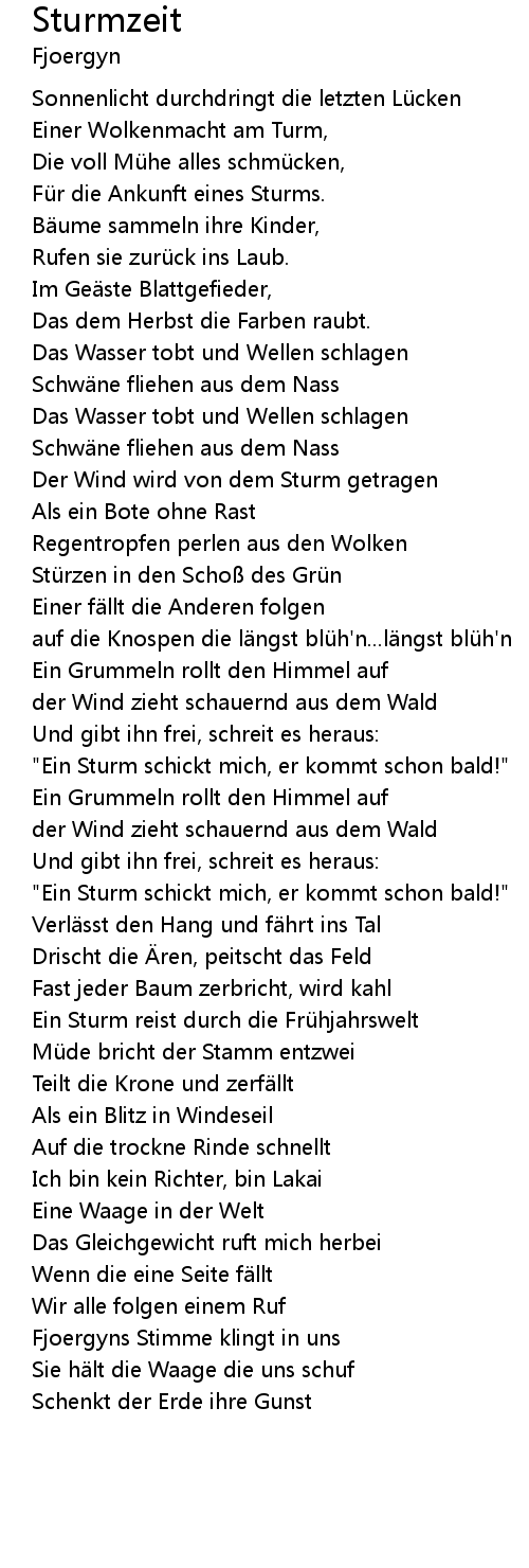 | "Ein Sturm schickt mich, er kommt schon bald!" | |