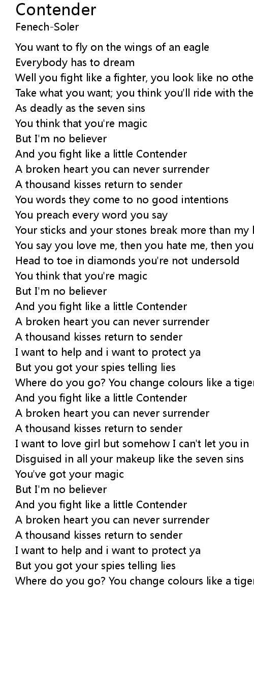 And you fight like a little Contender |