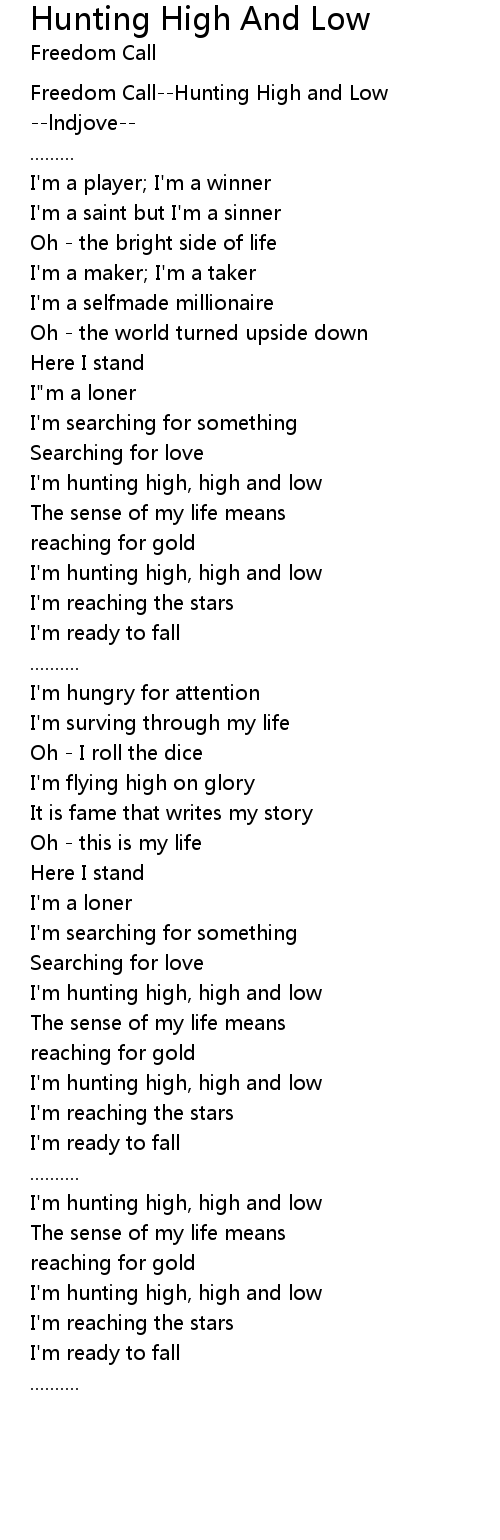 I'm hunting high, high and low |