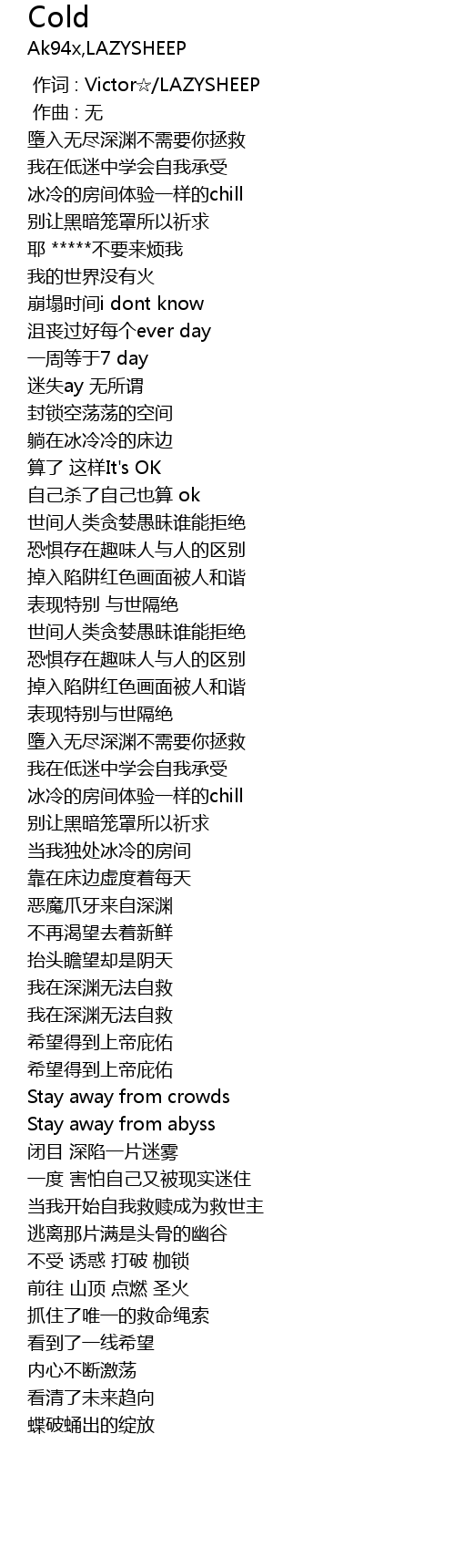 | [00:24.436] | 墮入无尽深渊不需要你拯救 |